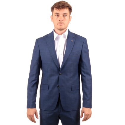 Modrý károvaný pánsky oblek s elastanom v Regular fit strihu