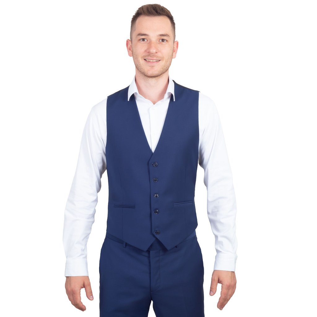 Tmavomodrá obleková vesta
